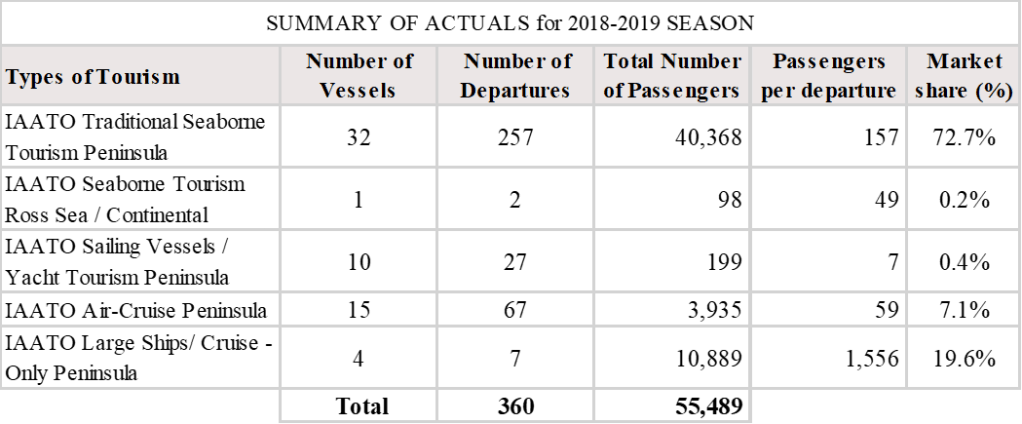 There are five distinct but connected expedition cruise ship services in Antarctica, according to the IAATO. The tables below consolidate the numbers.